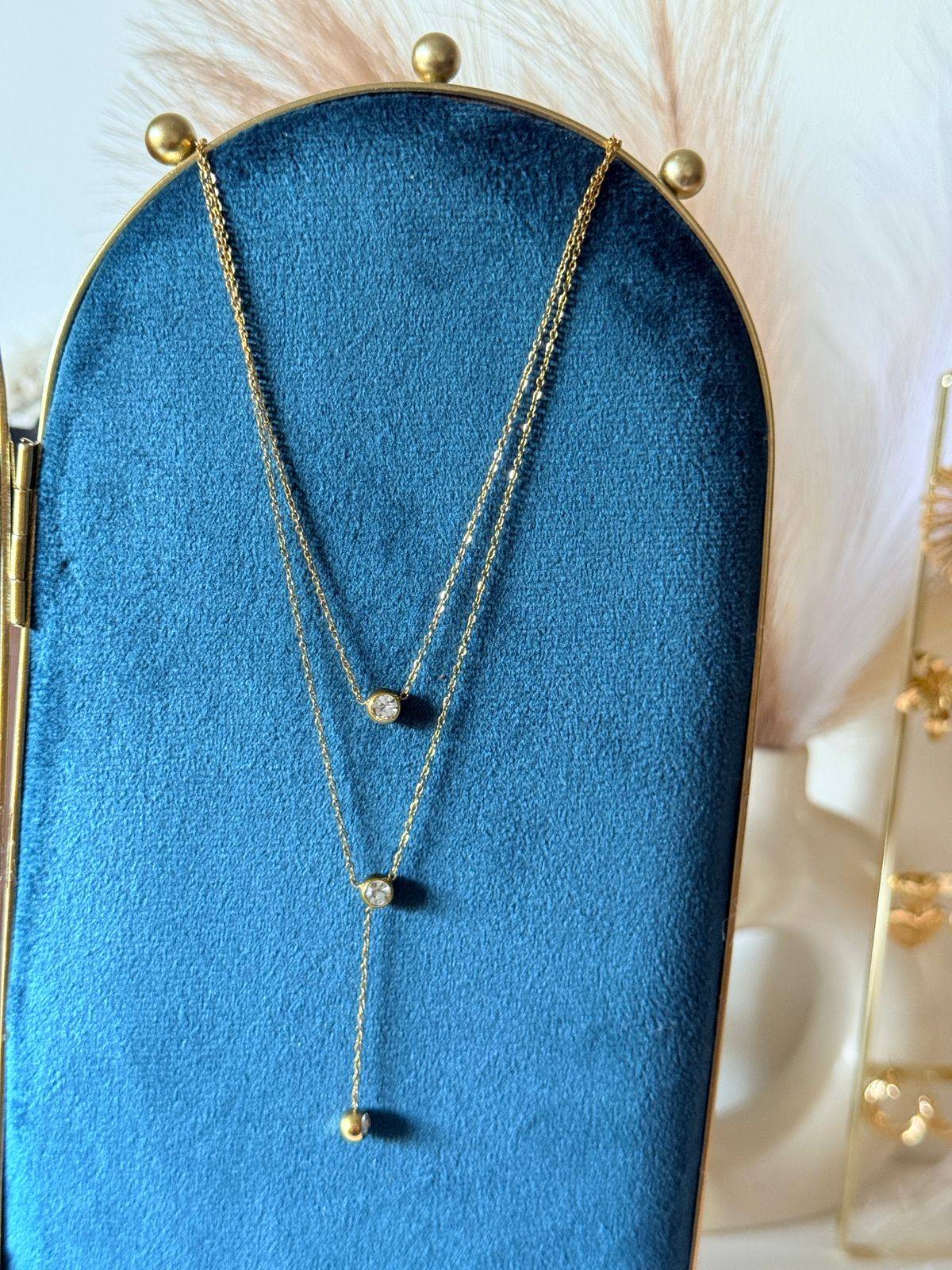 Double layer stone necklace